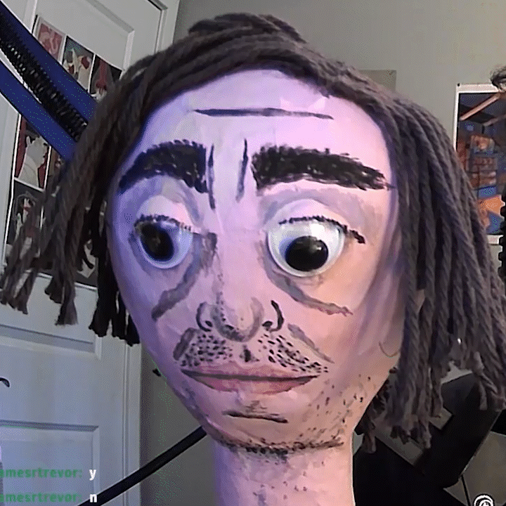 Little Jimmy came out of my interest in animatronics and Twitch chat integration. Basically I wanted a little sidekick that people watching the livestream could control. I decided to go with something of a self-portrait because I’d rather not inflict my caricatures on someone else.